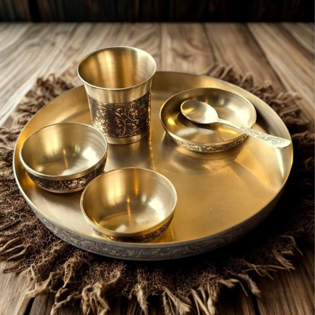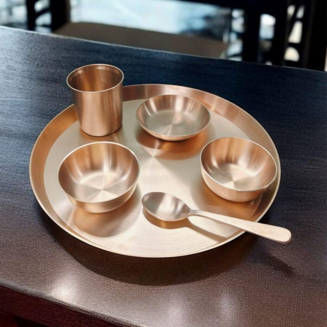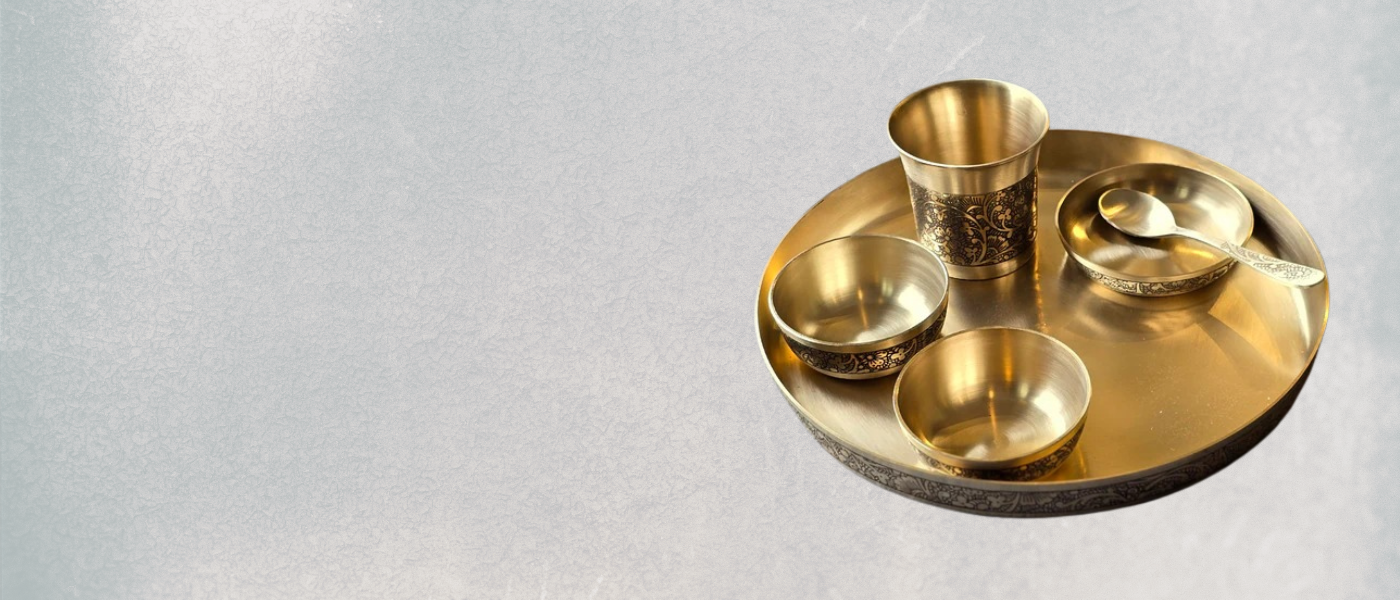 Experience the purity of traditional Indian dining with our 100% Pure Kansa Thali Set handcrafted by master artisans .